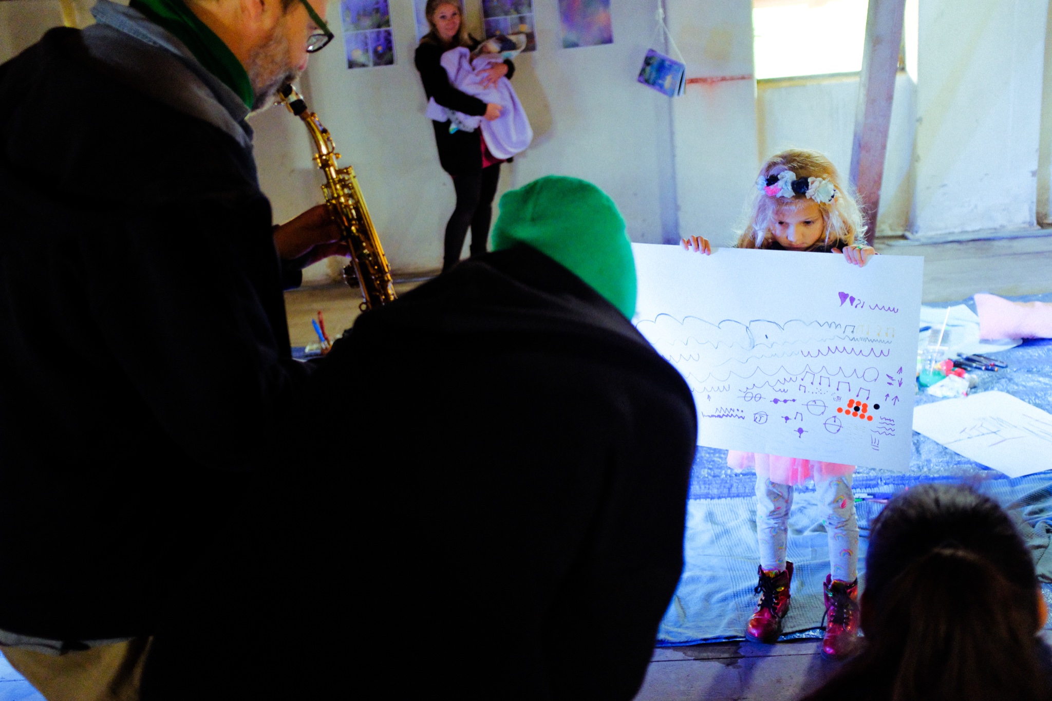 Fotografie z workshopu Malujeme hudbu, festivalu Zvuky, barvy, hlasy kaple sv. Anny a Mikrooper Opery Diversa.